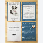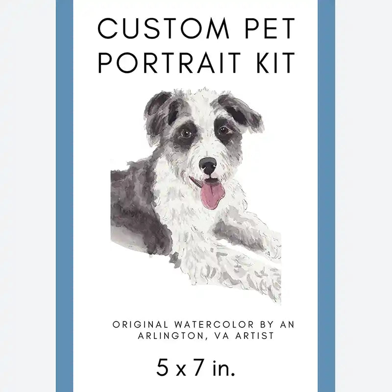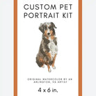 The custom watercolor pet portrait kit includes a sample of the artist's work and detailed instructions on how to contact the artist to create your personalized pet portrait. Andrea Schmeling, the artist, will complete the artwork and send it directly to the recipient at no additional cost.