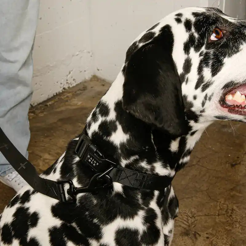 Elevate your pup's style with Le Luxe Dog Collar—where sophistication meets everyday comfort. Crafted from premium woven polyester with a silky finish, this collar delivers that coveted luxury aesthetic without compromising durability. The subtle sheen catches the light beautifully, making your furry friend the star of every walk and photo op. Finished with a sleek matte black buckle, sturdy triangle ring, and Saint Rue's signature vegan leather labeln - it's the perfect blend of Instagram-worthy glamour and timeless classic design. Because your dog deserves to look as fabulous as they feel.