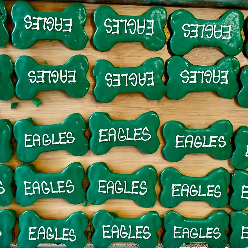 Celebrate your pup’s Eagles pride with a delicious bone treat dipped in yummy green yogurt! Made using yumyum4dogs’ classic peanut butter recipe, these treats are carefully baked in small batches with only the finest natural ingredients. Perfect for dogs and owners who want to share a snack full of flavor and team spirit!
